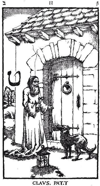“Stand By You”‘s cover art is again based on my interpretation of a woodblock print from “El Club Dumas”. It shows a hermit holding two keys before a closed door, accompanied by a dog.